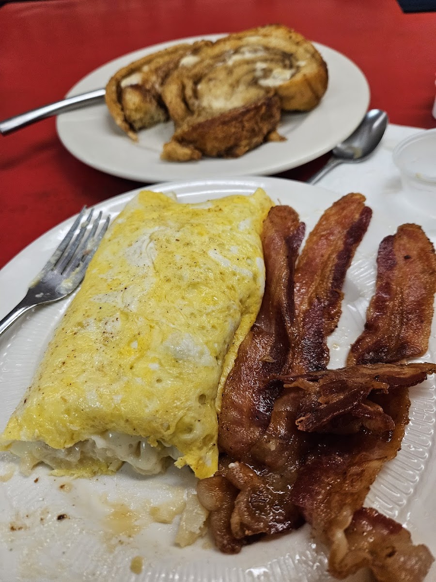 Cathy's Cafe embraces the spirit of a classic diner, offering a menu that focuses on comfort food with a twist. From their renowned **scalloped potato omelet** to **corned beef SOS on toast**, every dish is a celebration of familiar flavors made from scratch. Each plate is prepared with love and attention to detail, ensuring that every bite is both satisfying and memorable. The **homemade cinnamon toast** also deserves a special mention—it's an enchanting step back into childhood with its warm sweetness and perfect crunch.